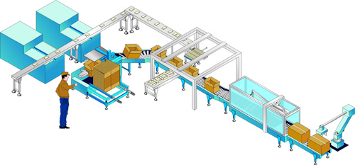 石膏板材六面裹膜包裝輸送